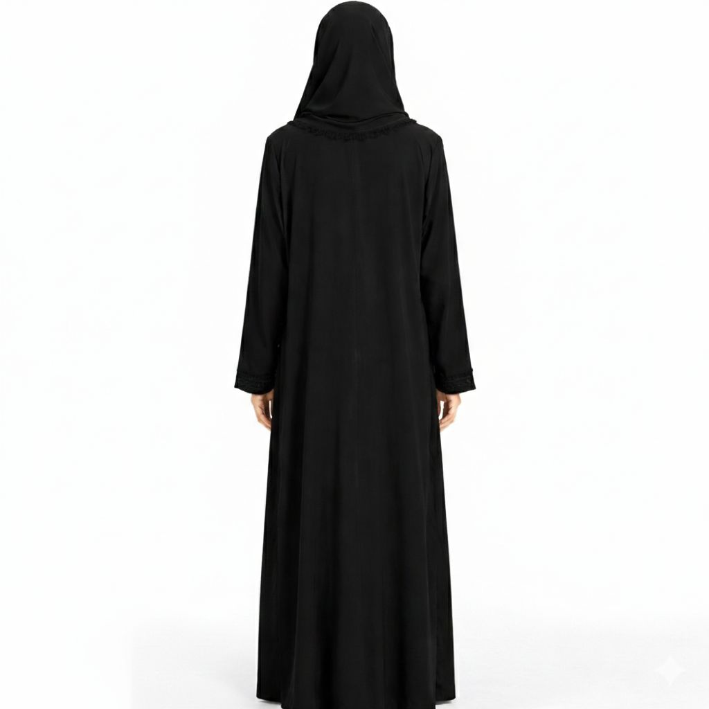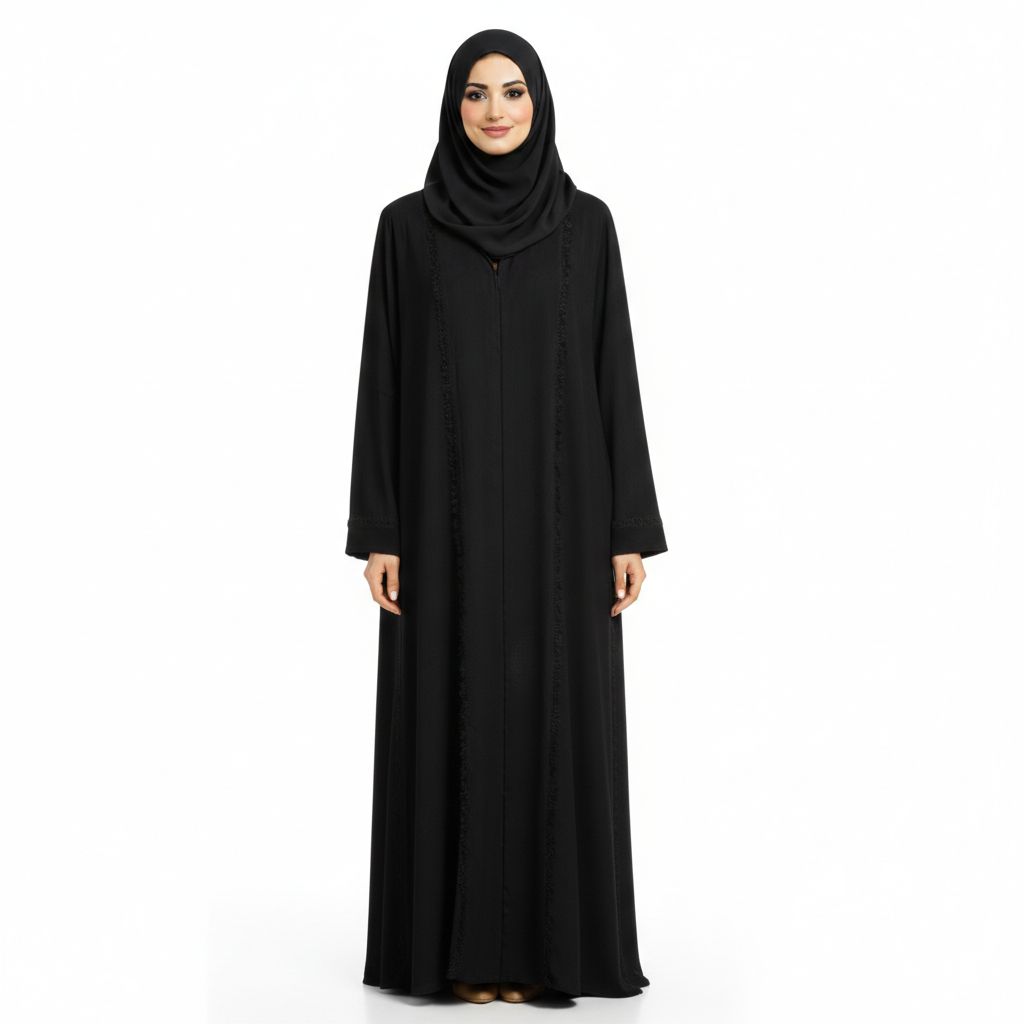 Cette abaya se distingue par une élégance profonde et minimaliste, pensée pour celles qui recherchent un style affirmé, sobre et intemporel. Sa coupe longue et fluide offre un tombé naturel et harmonieux, enveloppant la silhouette avec légèreté sans jamais la contraindre.