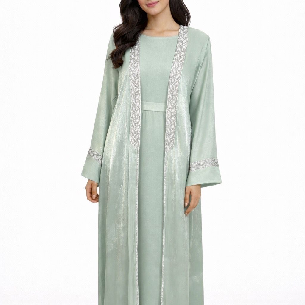 Abaya LUMINA MINT – Avec foulard et ceinture